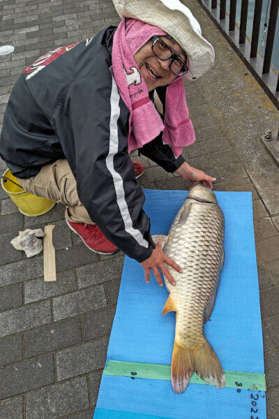 そして12時頃、エルボに3本目!最初マットに乗せた時は90センチちょっと超えかと思いましたが、ちゃんと計測したところ95センチ!先週のオフ会のリベンジ。復活隅田川祭りだぃ!!