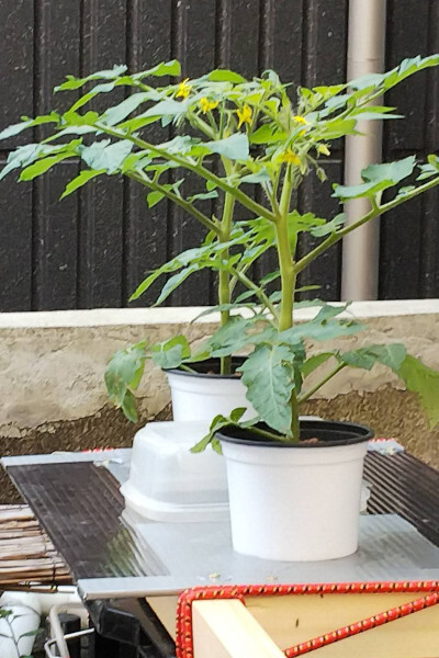 こんにちは!鯉君の濾過槽で、ミニトマトの水耕栽培を始めました。