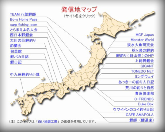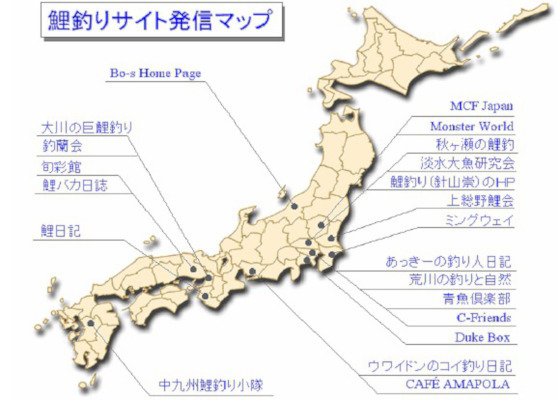 Monster World・C-FRIENDS・Bo-s Home Page・中九州鯉釣り小隊・旬菜館・淡水大魚研究会・あっきーの釣り人日記・ウワイドンのコイ釣り日記・鯉釣り(針山崇)のホームページ・上総野鯉会・秋ヶ瀬の鯉釣・鯉日記