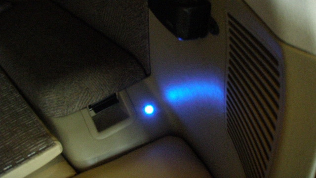 サブバッテリーは右後に載せてありますので、3連シガーソケットもその近くに固定しました。途中にLED式スイッチを取り付け、ON/OFFできます。配線は内装カバーの中を通しているため、外からは一切見えません。