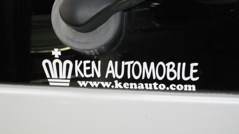 車の後に回ると、リヤワイパーの下に小さいけれどちょっとお洒落な「KEN AUTOMOBILE」のステッカーが貼られています。クラウンマークは、福田さんがこよなく愛する「トヨタ クラウン」にちなんだものです。