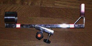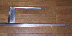 さっそく次の週末に、教えてもらった市内の製作所に行き、ヘッドに合った足を作ってもらったのでした。当時はとにかく丈夫に作ろうと思い、できあがってきたのが下の写真の足です。六角ムクのステンレス棒にφ10ミリの丸棒をL型に曲げた回転止めをアルゴン溶接で付けました。これはもう半永久的に使えるものができたと、とてもうれしかったのを覚えています。この嬉しさが後の竿掛け作りの序論だった事は言うまでもありません。