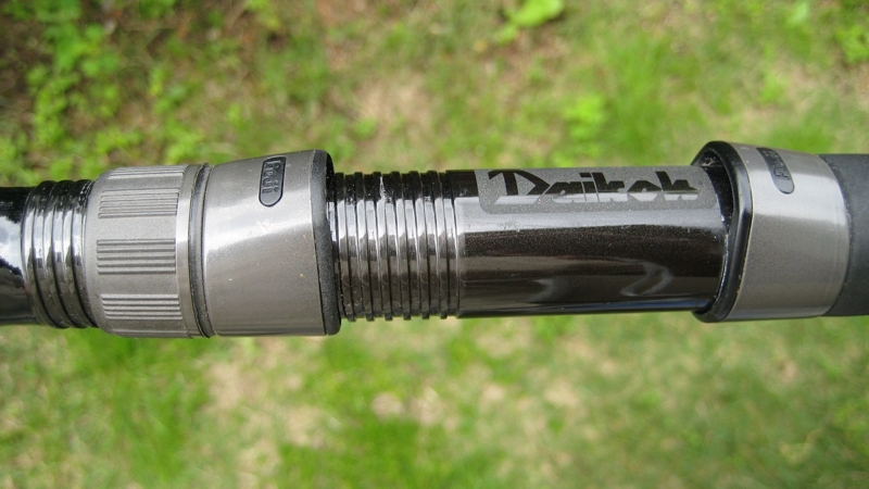 ブラック基調の光沢仕上げ、石突はダイコー伝統の使い心地よい大きさと形状をしています。リールシートにもDaikohのロゴを入れるほど細部にこだわっています。フロントグリップは膨らみをもたせて太くしています。個人的には細身の竿が好きですので、この膨らみを持ったグリップは唯一不満な点です。細身のままの方がこの竿の特徴が生かされると思います。ご丁寧にリールシートの下も膨らみを持たせたグリップにしてあり、キャスティングのときも左手で持った感覚がフロントグリップと同じになる太さに仕上げています。もしかしたら、石鯛釣りでは太めのグリップが使いやすいのかも知れません。