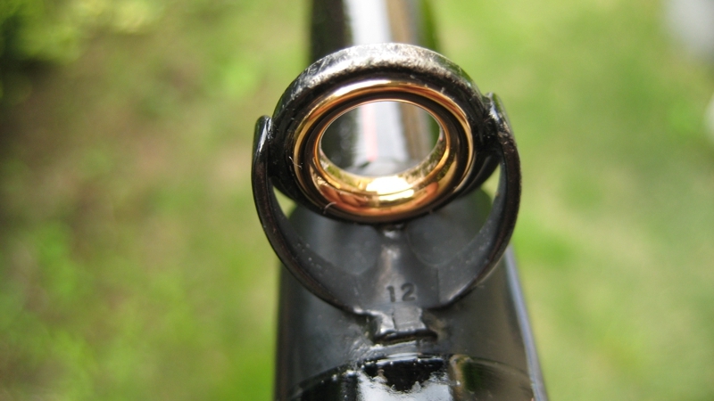 「名礁」の文字はレインボーカラーに輝き、ひときわ目立っています。ガイドは高級感漂うゴールドサーメットリングを使用しています。ゴールドサーメットとはチタンナイトライド(TiN)という材質で、セラミックスと金属の複合材料です。シリコンカーバイド(SiC)に比べて強度が高く割れにくい特徴を持っていて、ゴールドのルックス通り値段もSiCに比べて高価です。