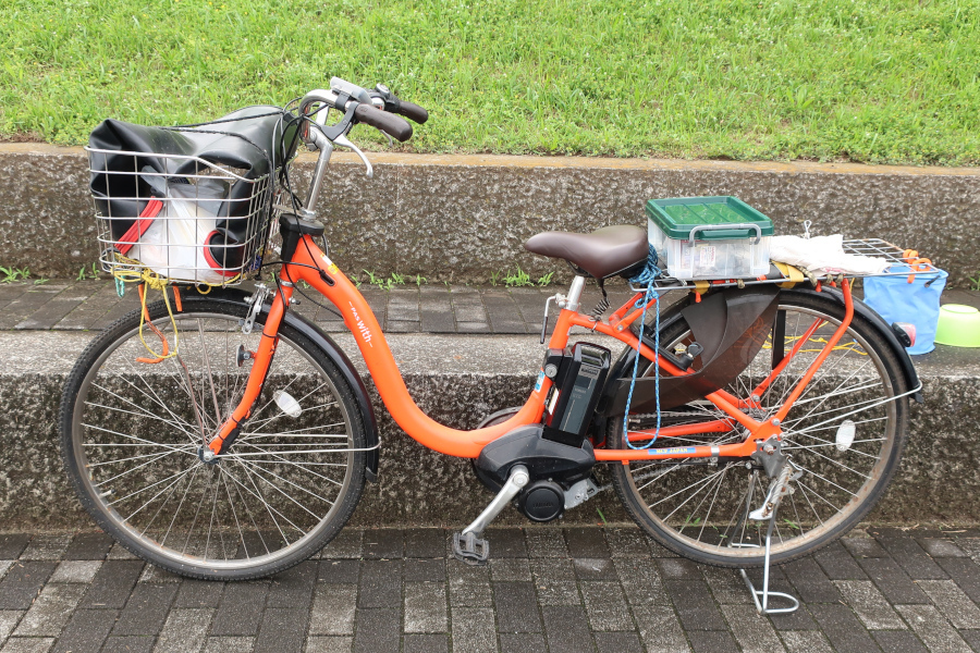 2019年から使用している鯉釣り専用車です。自宅から釣り場が近いので、3ヶ月に一度程度のバッテリー充電で済みます。鯉釣りの相棒であるエルボさんに、電動は「人間をダメにする自転車」と揶揄されますが、一度乗ったら通常の自転車に戻れません(笑)