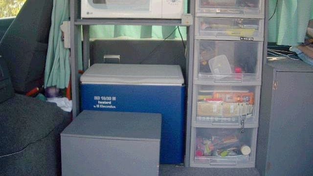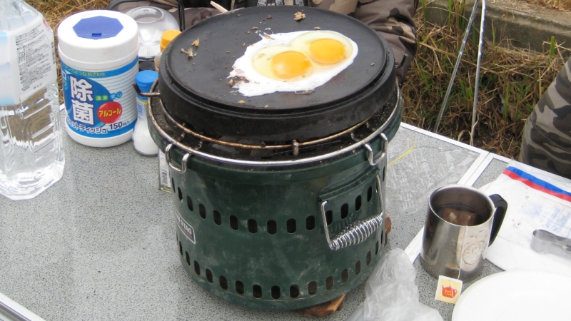 電子レンジがあると、釣り場での食生活がまるで別世界のようになります。サブバッテリーにインバーターをつないで電源として使います。冷蔵庫とペアで鬼に金棒。地鶏オヤジさんはいつもこのレンジで地鶏を温めてしてご馳走してくれます。