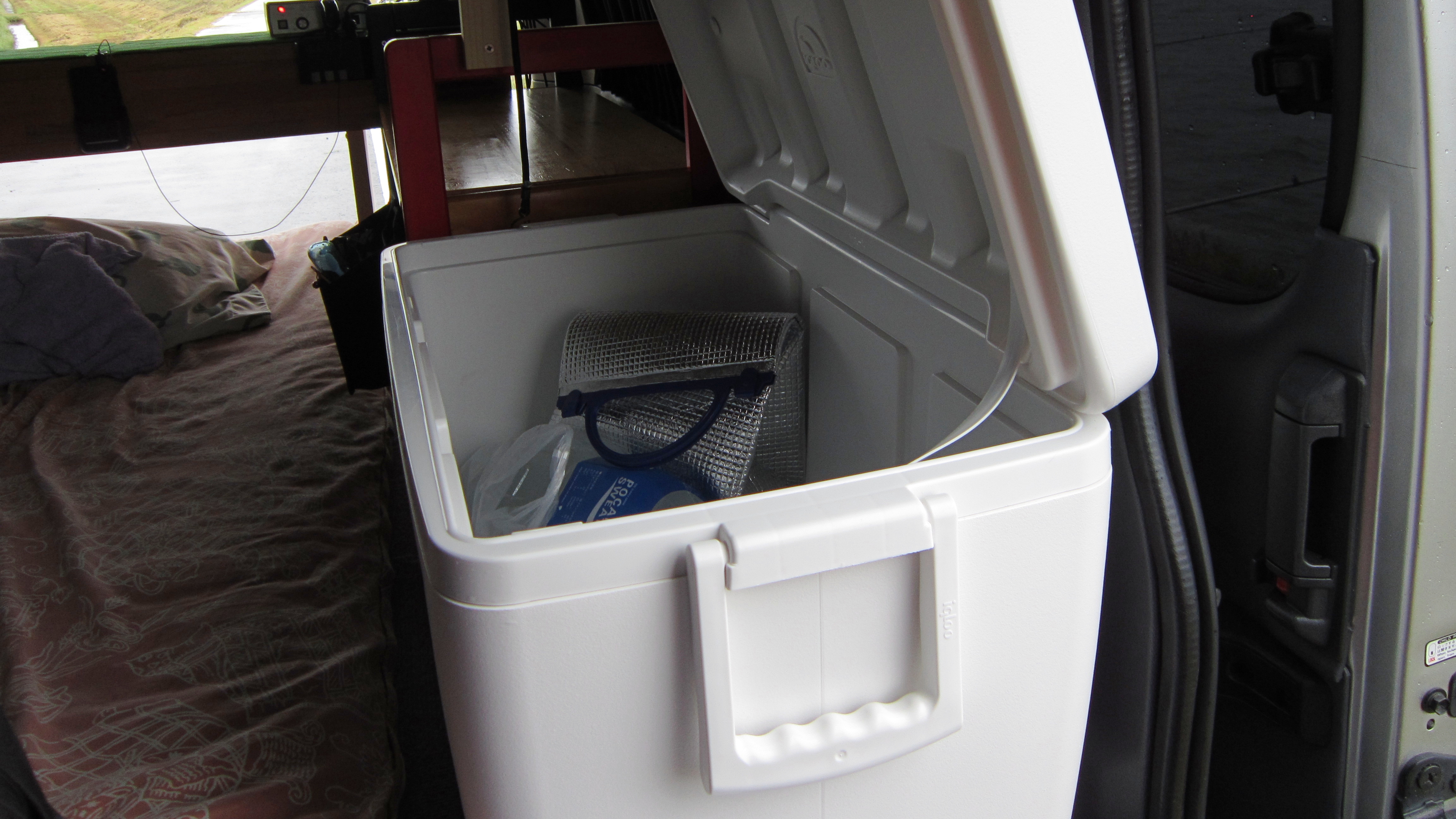 クーラーボックスは、暑い時期の釣行に欠かせません。格安で売っていたので購入しました。容量が大きいので、単独釣行では飲み物、食材が余裕で入ります。二泊三日の釣行でも、ペットボトルを凍らせて入れておくと溶けきりません。