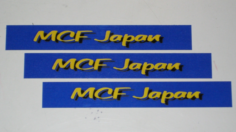 前作のMCFスリムステッカーから文字デザインを一新しました。今回のフォントは安定感の強いStencil。ロッドやロッドポッドなどに貼っています。
