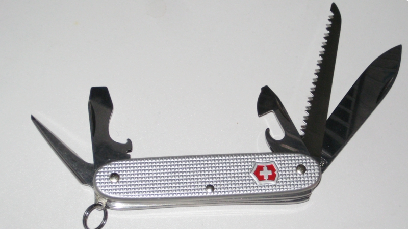 ハンドル長さが91mmの、最も使い勝手の良いサイズです。このツールだけで、ラージブレード、カン切り 、マイナスドライバー(大/小)、せん抜き、ワイヤーストリッパー 、リーマー(穴あけ)、のこぎり、キーリングの機能を持っています。