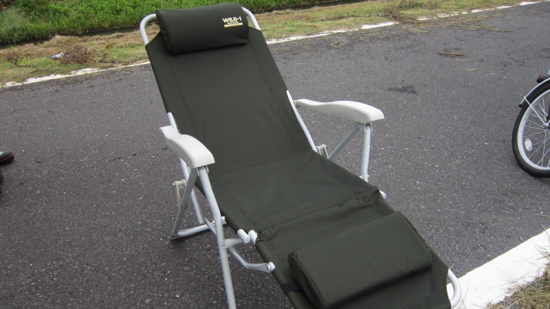 アルミパイプ材を使用した、軽量折り畳みチェアです。お手頃価格で売っていたので、つい買ってしまいました。枕が付いている上に足を乗せることができるので、寝てしまいそうになります。